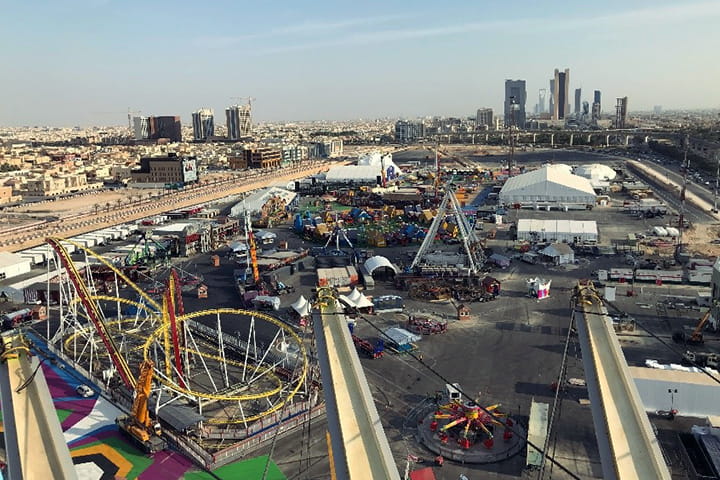 受伦敦海德公园冬日仙境游乐场(Winter Wonderland)的启发,沙特阿拉伯首都利雅得也建立了自己的节日娱乐场所。该场所共有42座游乐设施,包括小型儿童游乐设施,经典的旋转木马,著名的慕尼黑十月啤酒节的动力塔,以及世界上最大过山车之一---双环(Double Looping)。这些设施均从欧洲购买和运送,并由欧洲方面进行了预检,安装和检查。此外还有著名的55米高摩天轮。 游乐场位于阿卜杜拉国王金融区对面,占地面积20万平方米。