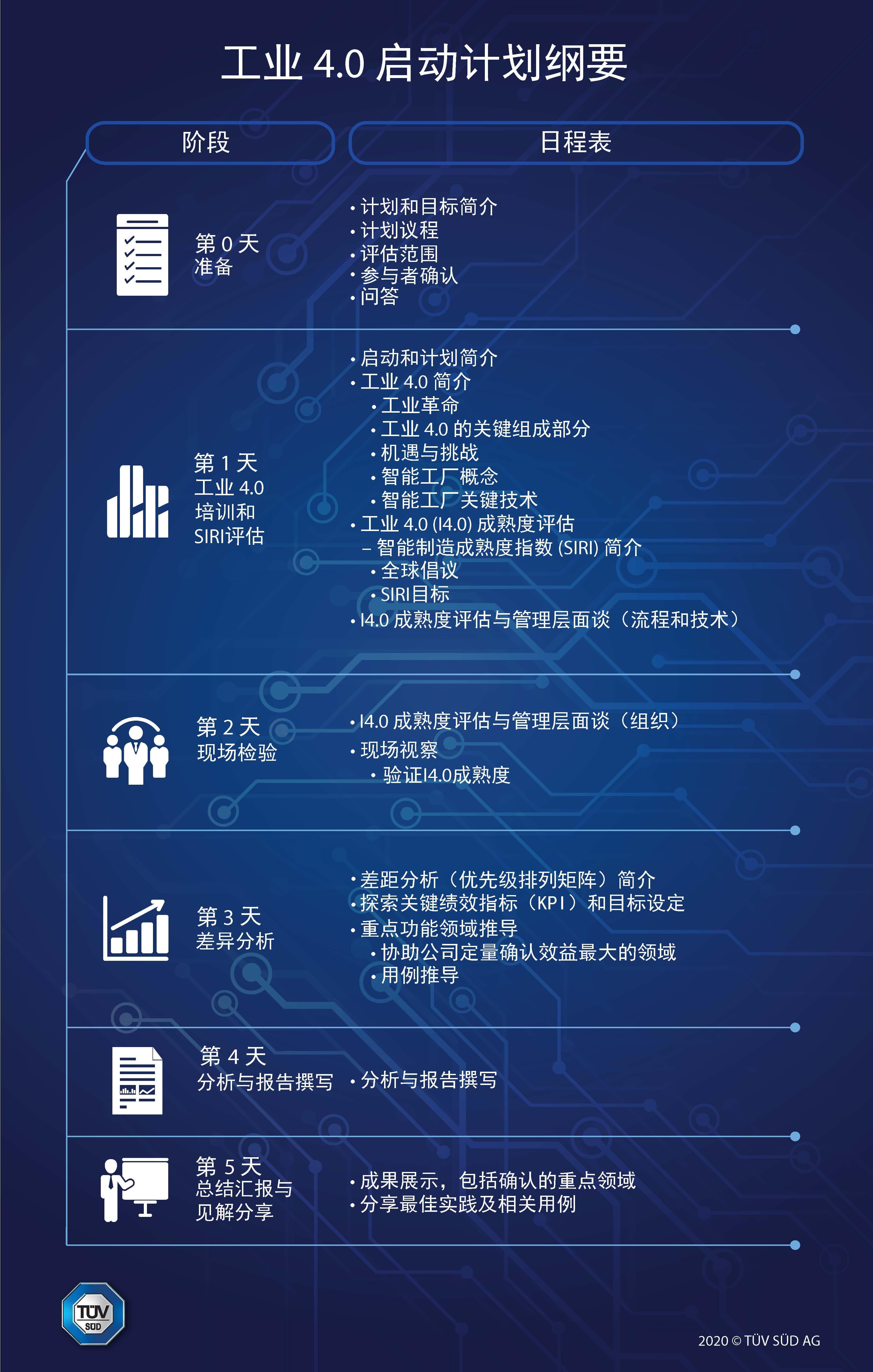 TÜV南德的工业4.0(I4.0)启动计划旨在支持组织启动横跨组织、流程和技术的I4.0转型之旅。