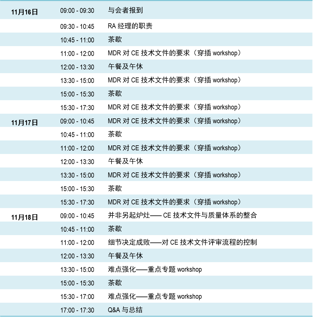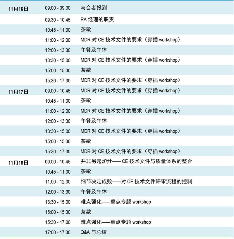 我们希望借助此次专题培训,让企业更清晰的理解MDR法规对于CE技术文件编撰和维护的要求,更好的准备MDR法规下的CE技术文件,加速产品上市。