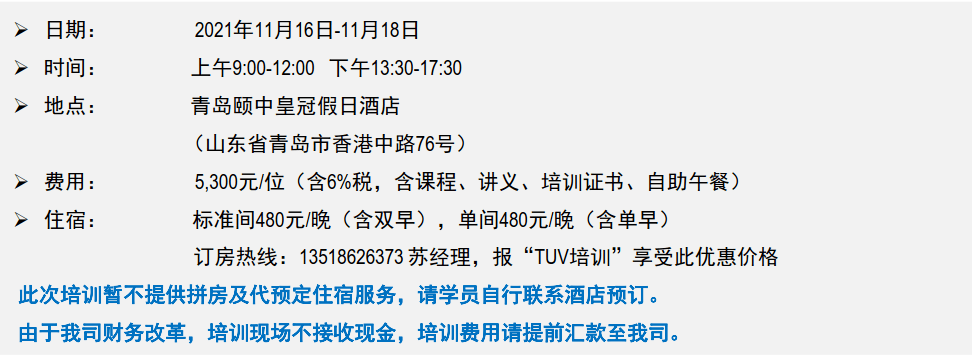 我们真诚邀请您参加于2021年11月16日-11月18日由TÜV南德意志集团医疗、健康服务部门举办的欧盟医疗器械法规 CE 技术文件专题培训。