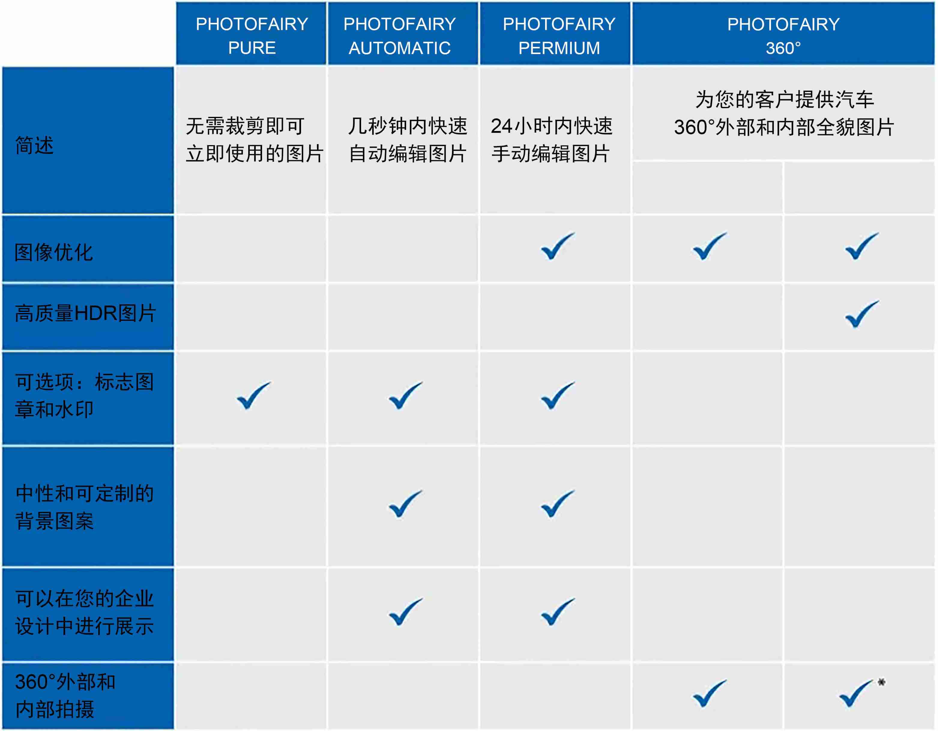 我们的PhotoFairy服务可以作为我们二手车管理解决方案的一部分或作为独立服务提供。