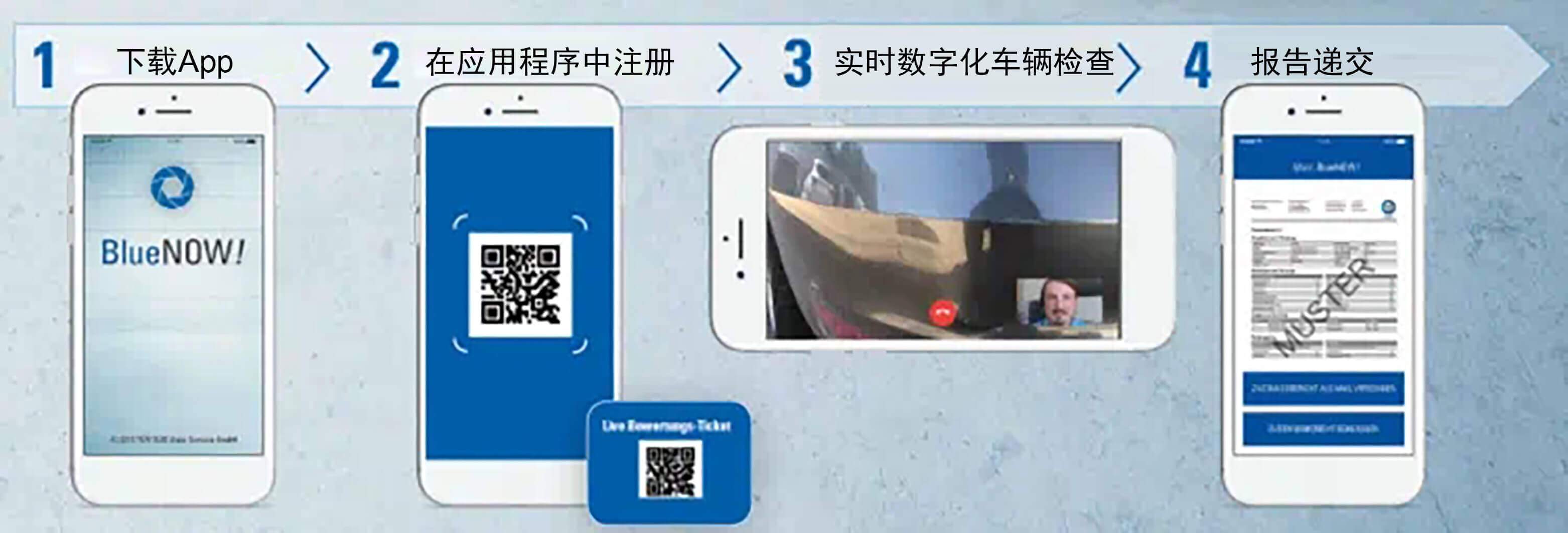 车主/用户、车队经理或汽车经销商都对可靠和安全的车辆检查有需求。使用TÜV南德应用程序BlueNOW!我们为远程车辆检查和商用车检查提供智能解决方案。您可通过应用程序与我们的专家预约,然后可以在您的智能手机或平板电脑上开始数字化车辆检查。